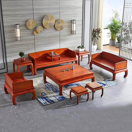 贡艺名居红木家具沙发采用缅甸花梨实木材质,展现出传统中式设计的魅力。它的舒适坐垫与稳重的外观,适合追求经典与品质的消费者。