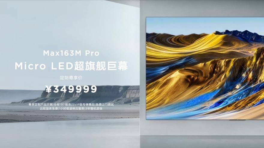 Max163M的定制尊享价为249999元,让跨时代级的巨幕观影体验有机会进入更多家庭。这款产品均同样可享受SVIP级专属售后与免费上门调试安装服务,预售期间也赠送98吋机皇X11L与10年视频会员权益。